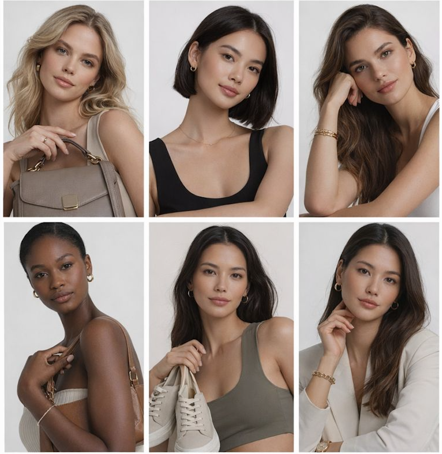 Consistent skin tones across multiple models, lighting conditions, and shoot days—essential for large, model-based catalogs.